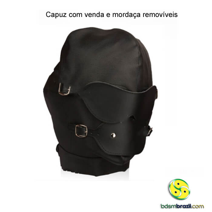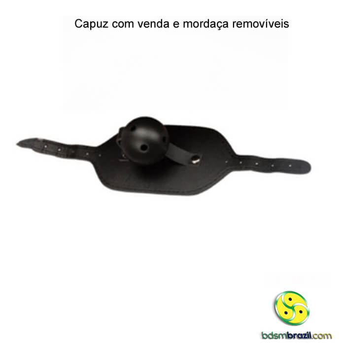 Capuz com venda e mordaça removíveis