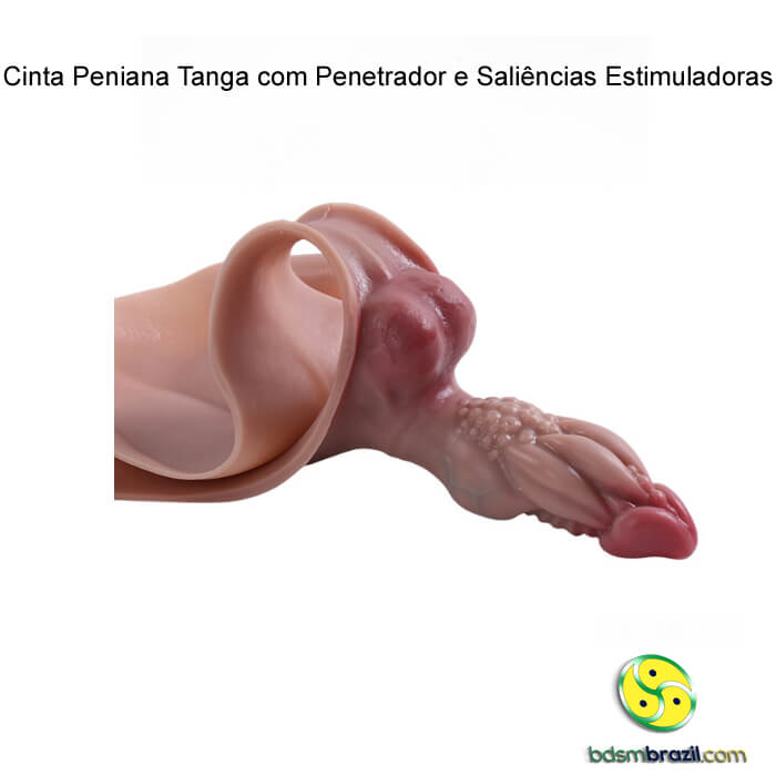 Uso: vista a cinta como uma calcinha tanga. Ajuste ao corpo e posicione o penetrador conforme desejado. Utilize sempre lubrificante à base de água para maior conforto e segurança do material TPE.
