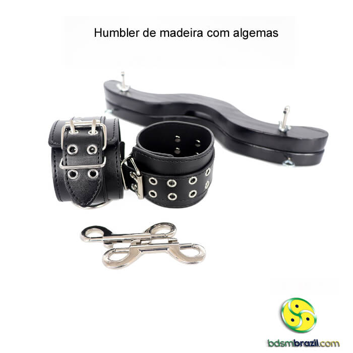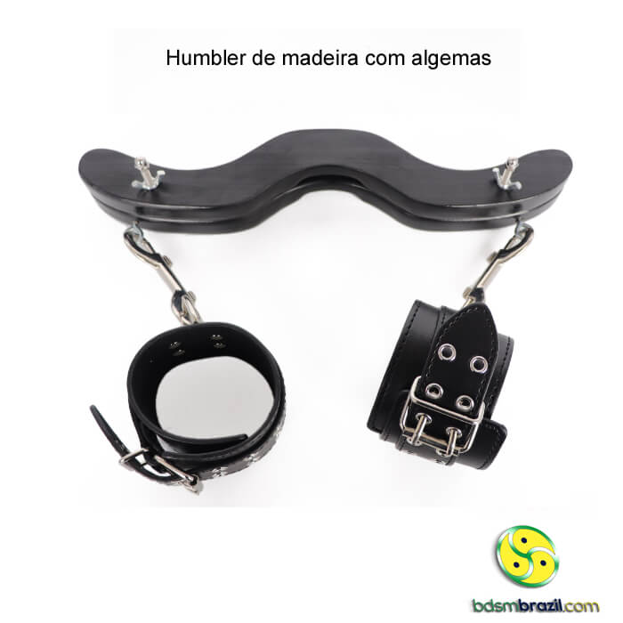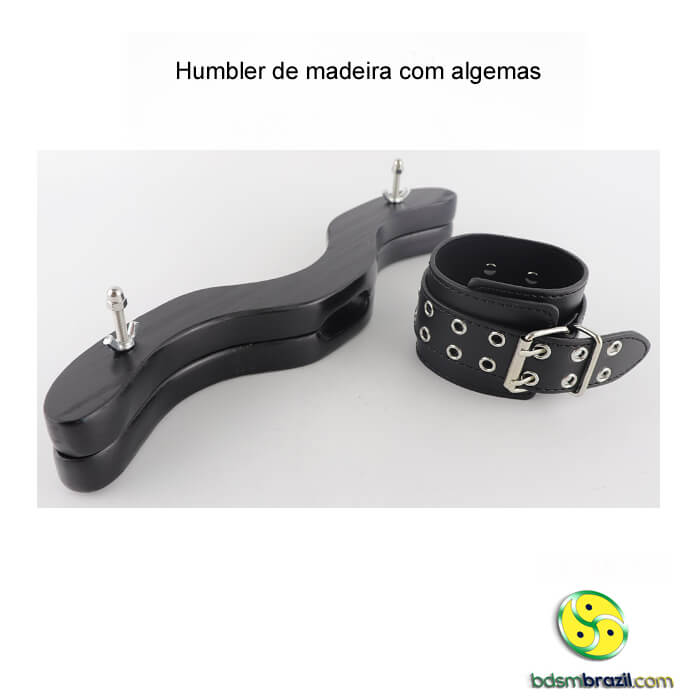 Humbler de madeira com algemas, um dispositivo ousado e empolgante que levará suas experiências no mundo BDSM a um novo nível. Projetado para proporcionar prazer e controle, este acessório exclusivo é perfeito para os amantes de jogos de dominação e submissão.