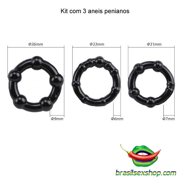 Kit com 3 tamanhos de anéis – possibilita ajuste personalizado