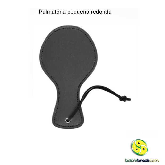 Palmatória com alça para punho.