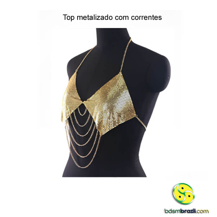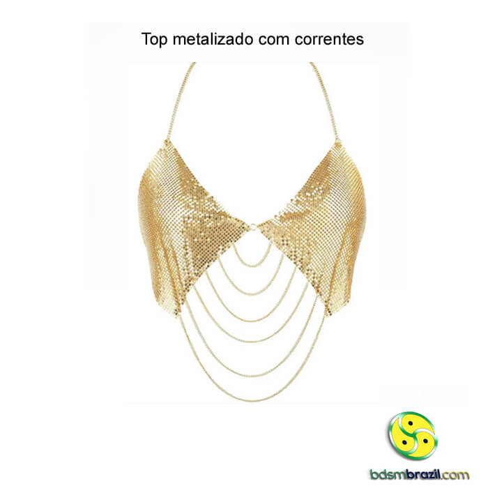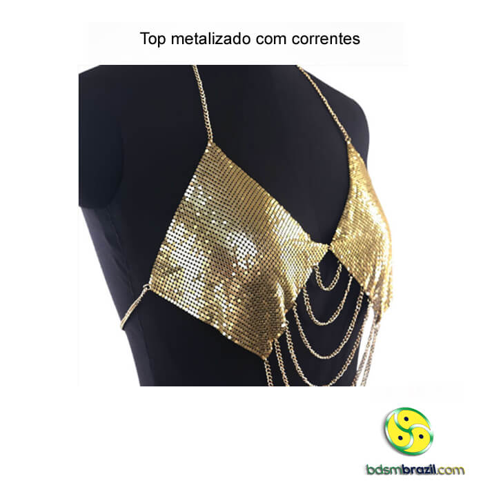 Top metalizado com correntes.